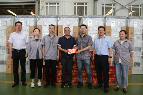 8月1日,揚州供電公司黨委委員、廣源實投董事長陳泰生一行來到揚州北辰電氣集團有限公司,慰問了戰斗在高溫一線的車間生產職工。